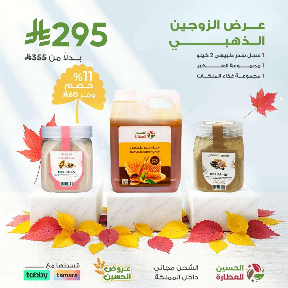عيشوا الصحة والنشاط مع عرض الزوجين الذهبي – الآن لدى الحسين للعطارة بسعر 295 ريال فقط.