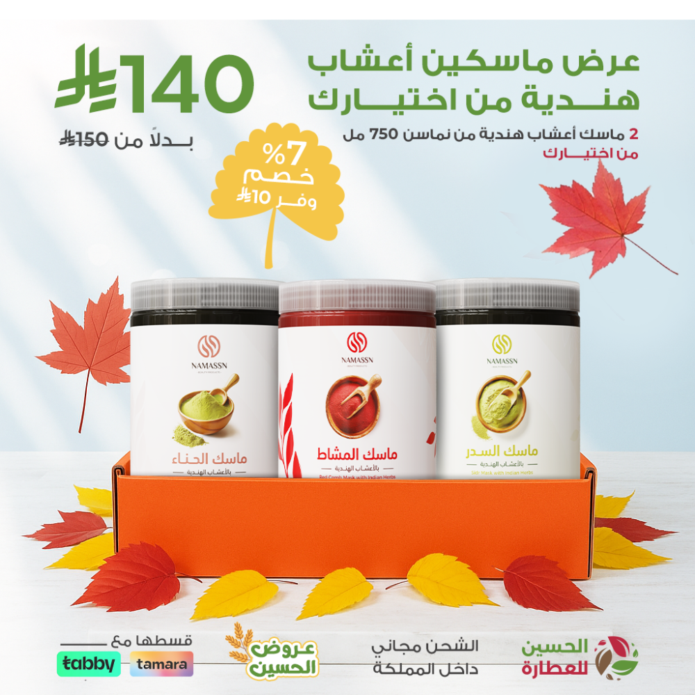 دللي شعرك مع عرض ماسكات الأعشاب الطبيعية – متوفر الآن حصريًا لدى الحسين للعطارة.