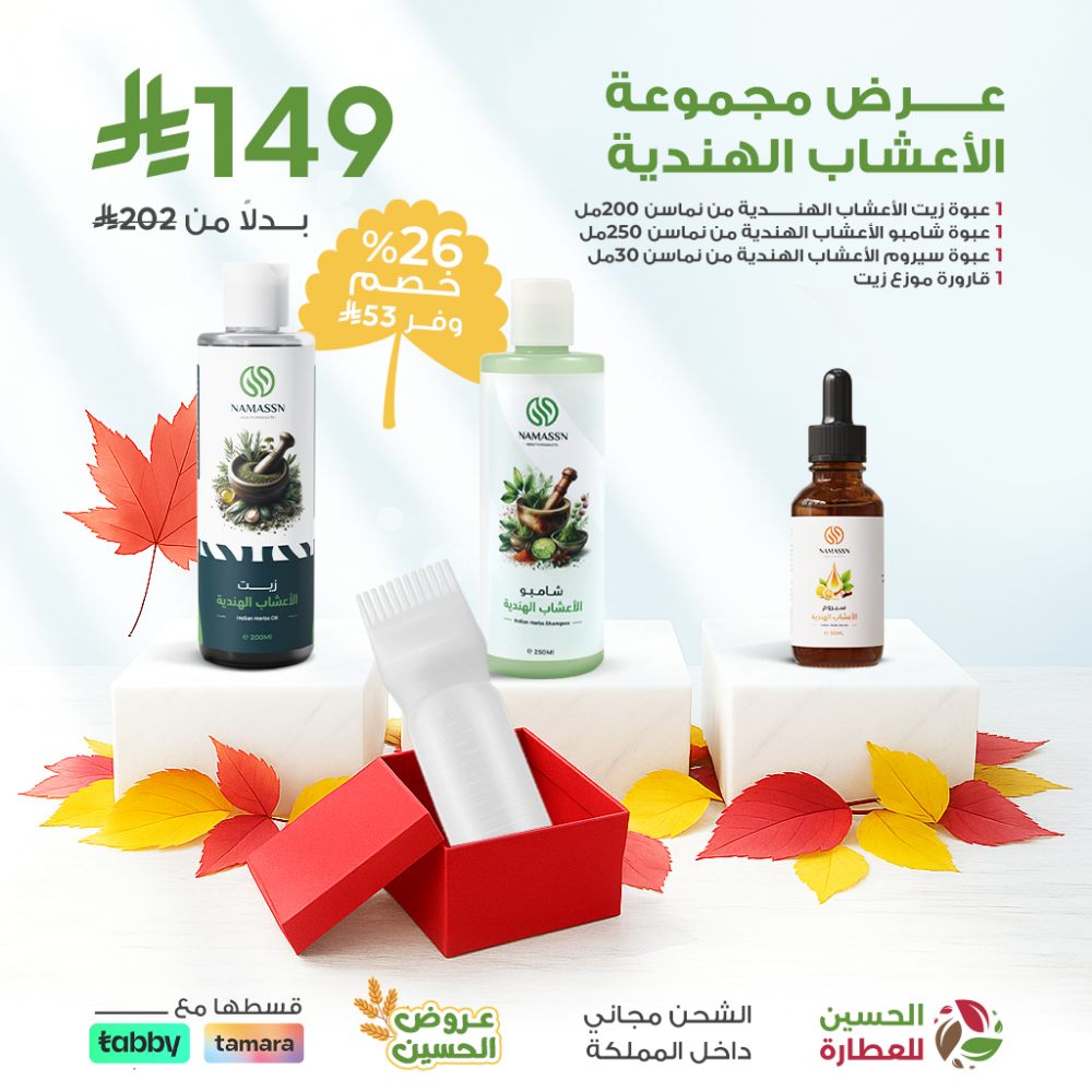 إذا كنتِ ترغبين في إحياء جمال شعركِ ومنحه العناية الطبيعية التي يستحقها، فإن مجموعة الأعشاب الهندية للشعر هي الخيار المثالي بتركيبتها الغنية بخلاصة الأعشاب الهندية، توفر هذه المجموعة تغذية متكاملة للشعر من الجذور حتى الأطراف مما يمنحكِ شعراً قوياً، صحياً، ولامعاً، امنحي شعركِ تجربة مميزة تجمع بين الطبيعة والعناية الفائقة.