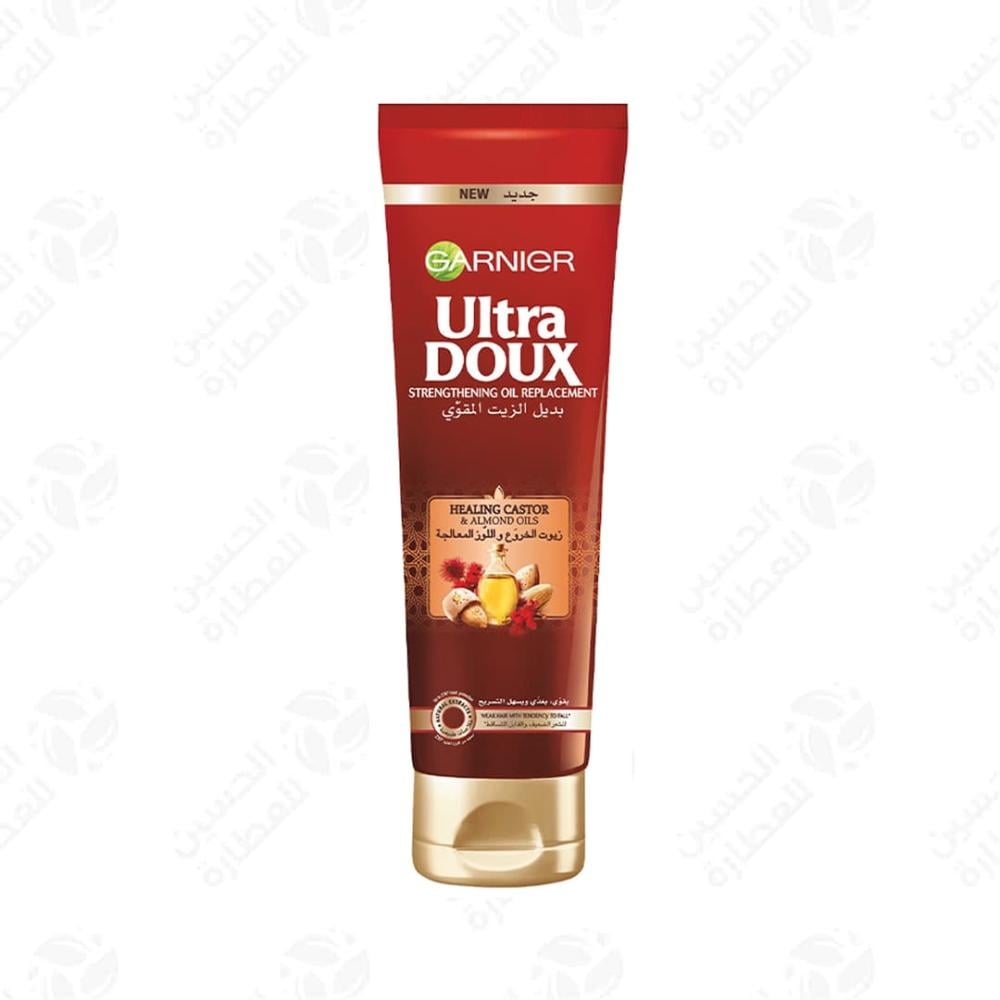 امنحي شعرك تقوية طبيعية ولمعانًا ملحوظًا مع بديل الزيت غارنييه بزيت الخروع واللوز – الخيار المثالي لكل امرأة تبحث عن شعر صحي وأنيق بأقل مجهود متوفر لدي الحسين للعطارة.