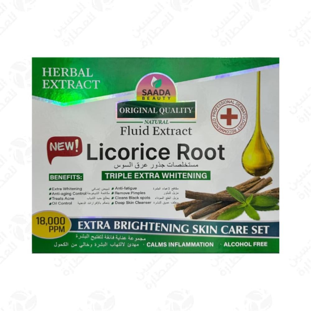 مجموعة العناية بالبشرة من سعادة بيوتي بعرق السوس هي الحل المثالي لبشرة أنقى، أفتح، وأكثر ترطيبًا بفضل تركيبتها الطبيعية التي تشمل كل ما تحتاجينه لتنظيف، تفتيح، وتغذية بشرتك يوميًا.